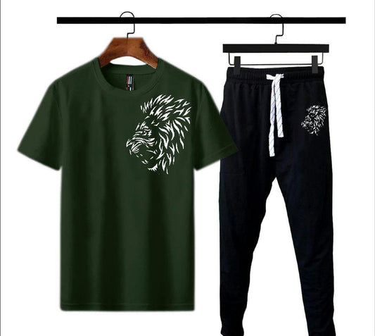 Mens 2pc Micro Plain Premium Fire Printed Tracksuit (TROUSER+SHIRT)