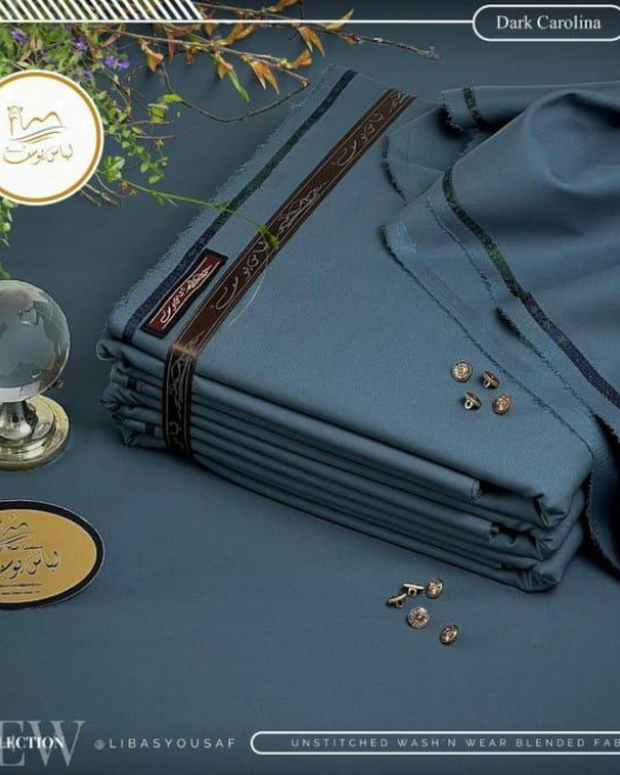 This unstitched fabric features a smooth, soft-touch texture, making it perfect for all-season wear. Its premium wash-and-wear blend ensures easy maintenance, wrinkle resistance, and long-lasting durability.